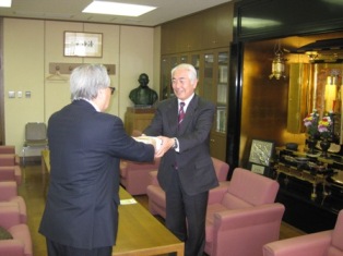 贈呈式では、藤花学園尾山台高等学校 山下一夫 校長へ、石川県宅建協会 竹村茂一 副会長より、「石川県宅建協会も平成25年4月1日より“公益社団法人”へ移行することから、今後、より一層ハトマークの会員店とともに地域支援に尽力したい。ぜひお役立て下さい」との言葉とともに「ハトの豆本」が贈られました。