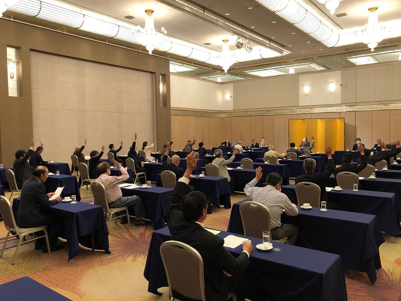 質疑を受け付けた後、採決に移行、賛成挙手多数により可決承認されました。その後、順次「第2号議案 理事選任の件」「第3号議案 監事選任の件」「第4号議案 新型コロナウイルス感染拡大に伴う会員支援策に係る件」も賛成挙手多数により可決承認されました。