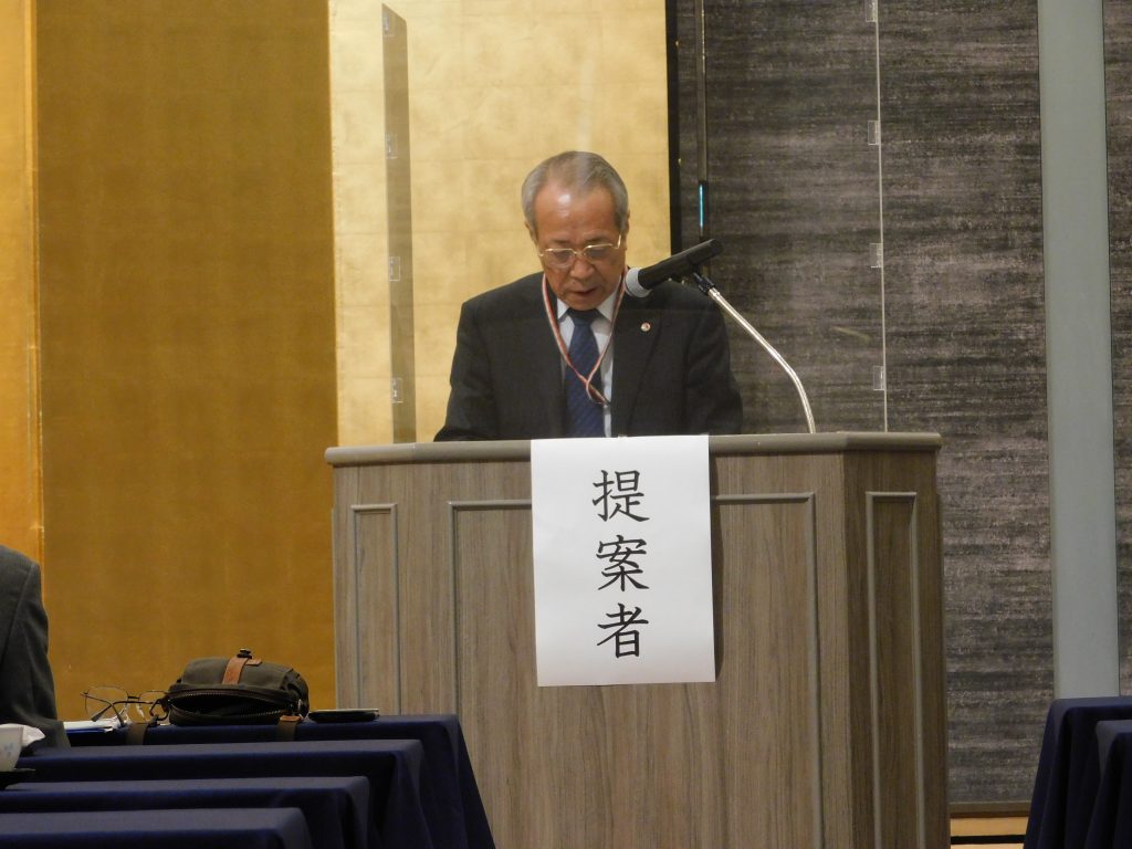 次第に従い議事に移行し、金沢東ブロックの高澤和浩 氏、小松能美ブロックの升田英治 氏が議長団としその後、高澤議長より、資格審査委員として金沢北ブロックの水野滋雄 氏、金沢東ブロックの松下幸平 氏、金沢南ブロックの横井研一 氏が、次いで、議事録署名人に金沢駅西ブロックの澤田幸造 氏、金沢西ブロック宮西一夫 氏が、最後に議事録署名人として事務局が指名されました。